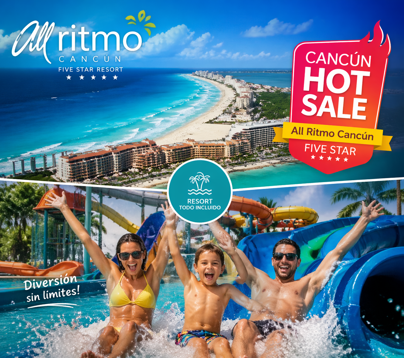 – The package includes 5 days/ 4 nights at Cancun All Inclusive Resort or similar for 2 adults and two kids up to 12 years old